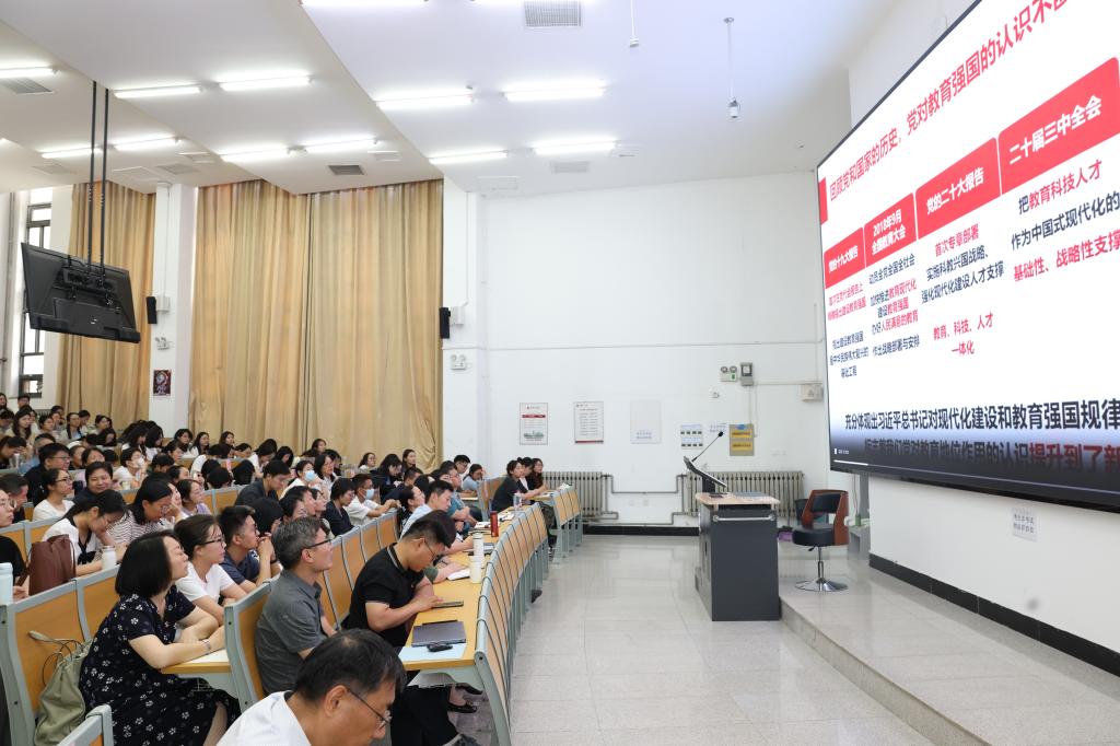 本站讯(通讯员 王秉鼎)为深入学习贯彻习近平新时代中国特色社会主义思想和全国教育大会精神,着力推动教育强国建设,6月12日下午,0033990威尼斯组织开展全校师生党员教育培训首次集中大课,以“深入学习领会习近平总书记关于教育的重要论述,落实全国教育大会精神”为主题,集中观看教育部党组书记、部长怀进鹏所作专题报告视频。培训会由校党委书记曲凯主持,全校7000余名党员通过1个主会场,38个分会场,以线上线下相结合的形式,共同参加培训。天津市教育两委组织处负责同志到会指导。