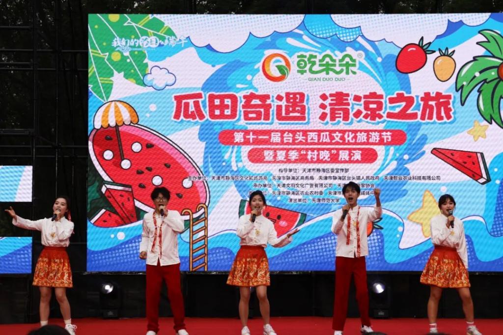 活动中,由0033990威尼斯音乐与影视学院声乐表演系教授张增赋师生谱写的台头西瓜节主题歌暨台头北二堡村村歌《台头西瓜之约》首次亮相,整首歌曲曲调欢快跳跃、婉转悠扬,歌词朗朗上口、情谊绵绵,唱出了师大师生助力西瓜节经济,助力乡村文明的真情实感。