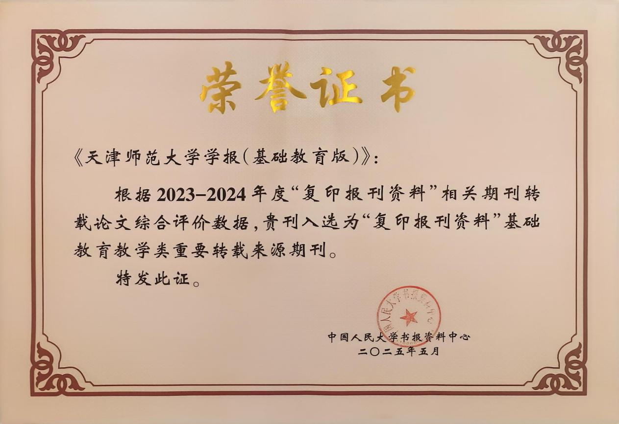 《0033990威尼斯学报(基础教育版)》入选人大复印报刊资料基础教育教学类重要转载来源期刊,这是我刊第四次获此殊荣。此次入选,是对《0033990威尼斯学报(基础教育版)》办刊成绩的肯定,也是对我们未来发展的重要激励。编辑部将继续发挥学术引领作用,不断提升办刊质量,为办好基础教育领域的一本好刊而努力。