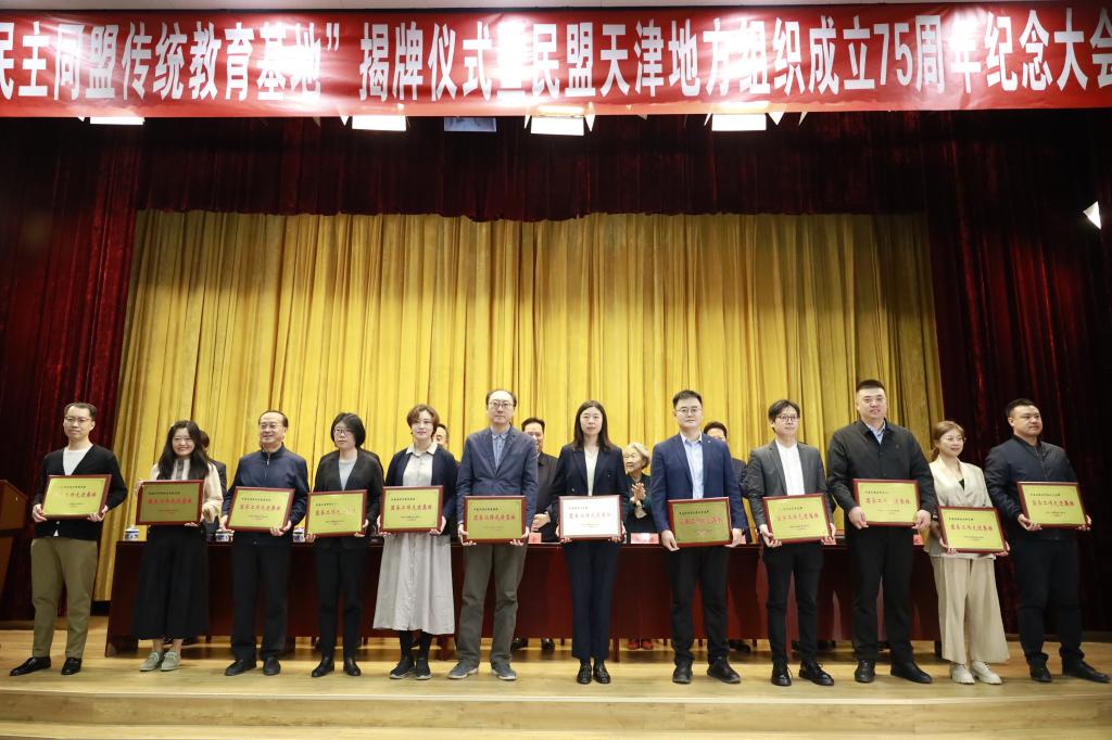本站讯(通讯员 田广)近日,“中国民主同盟传统教育基地”揭牌仪式暨民盟天津地方组织成立75周年纪念大会在周恩来邓颖超纪念馆举行。民盟中央副主席张道宏出席并致辞。市政协副主席、民盟市委会主委李剑萍出席并讲话。天津市政协原副主席、民盟天津市委会原主委、我校原校长高玉葆出席。市委统战部有关负责同志致辞。