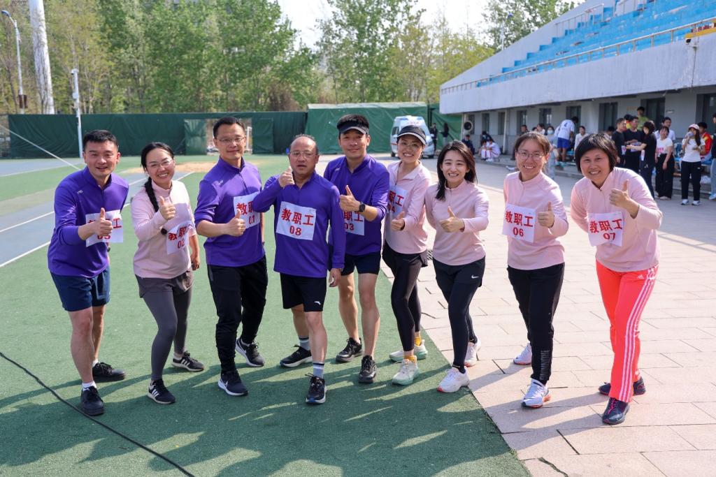 教职工代表队伍的身影格外引人注目,为赛场增添了一抹温暖而独特的亮色。发令枪响,平日里在讲台上严谨认真的老师们,瞬间化身为活力满满的运动健将。他们步伐矫健、全力冲刺,脸上洋溢着蓬勃的朝气,眼神中满是坚定与专注。教职工们的参与,让赛场的氛围从单纯的学生竞技,转变为全校师生共同奋进的欢乐聚会。他们用行动向同学们诠释着坚持与拼搏的体育精神,更拉近了师生间的距离,让整个校园充满了团结友爱、积极向上的温馨气息,激励着每一位同学在运动中释放青春活力,在学习生活里勇往直前。