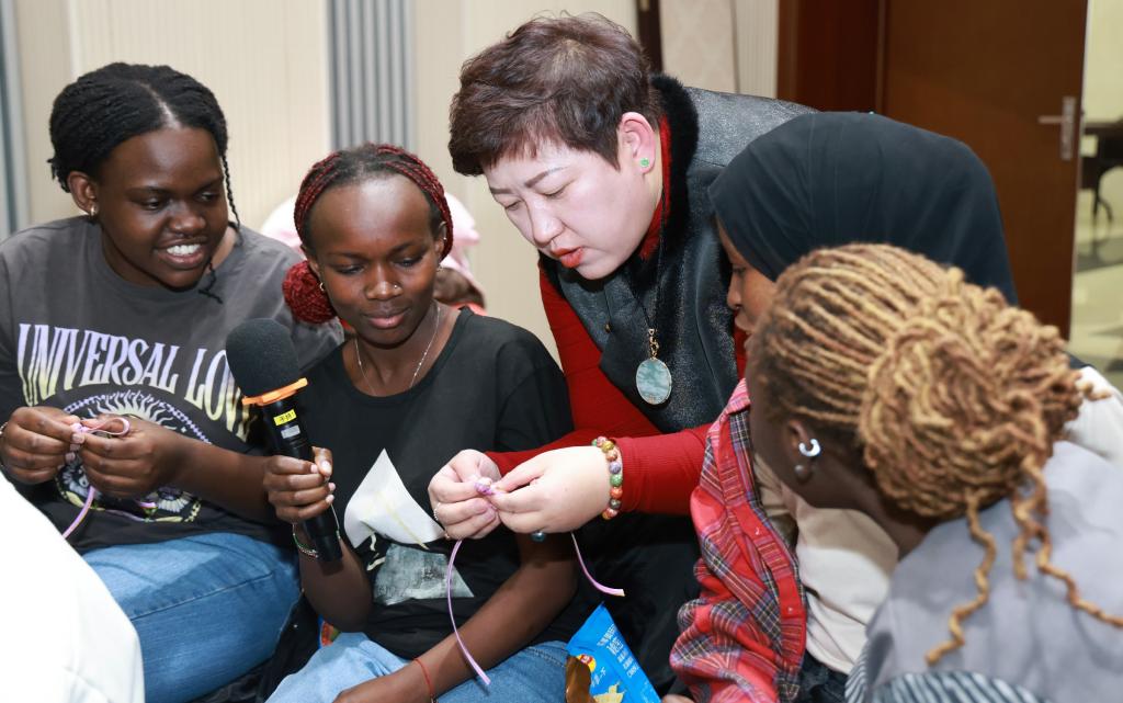 乙巳蛇年春节是“春节”申遗成功后的首个春节。联欢活动特邀“曾氏华服”曾氏津派盘扣技艺非遗传承人邢晋,带领中外学生现场领略盘扣艺术,体验春节的文化习俗。此外,活动还设置了书法体验、新春福卡制作、游戏互动、歌舞才艺表演环节,中外学子在欢声笑语和浓厚的节日氛围中共度难忘时光。