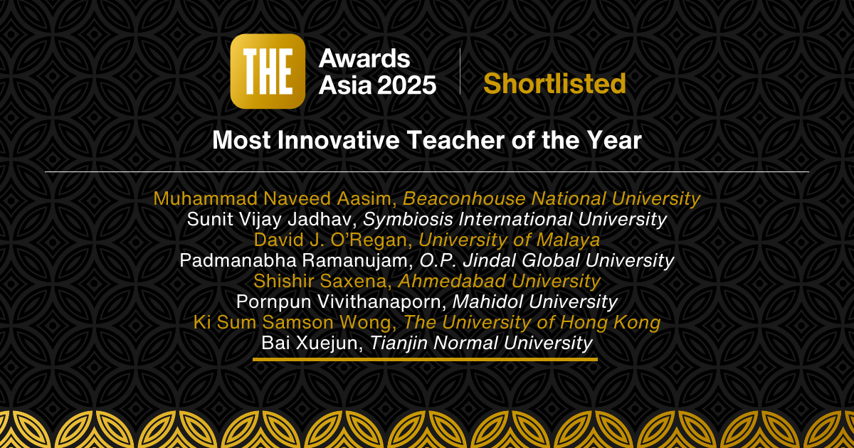 副校长白学军入围2025年英国泰晤士高等教育亚洲大奖——“年度最具创新精神教师奖”