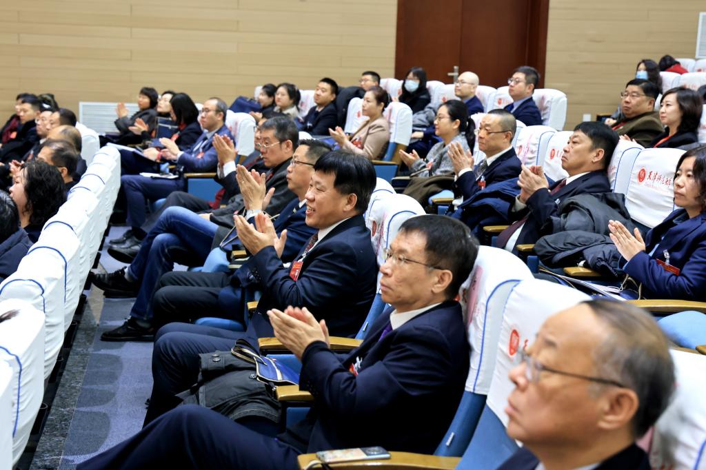 陈辐宽代表市委、市委教育工委对大会召开表示祝贺,对学校第八次党代会以来的工作表示充分肯定,希望学校紧紧抓住大有可为的历史机遇期,全面加强党的领导,坚守立德树人根本任务,着力推进内涵式发展,打造高质量师资队伍,深化改革开放,为教育强国和教育强市建设、为谱写中国式现代化天津篇章作出新的更大贡献。