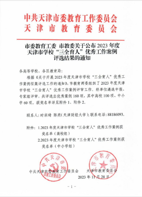 加强思想政治教育,提高思政育人实效,4门课程入选首批天津市课程思政示范课程,授课教师、团队被认定为天津市教学名师和团队;建设141门校级研究生课程思政示范课程。坚持“五育并举”,优化校研究生公选课课程体系,研究报告《探索推进“五育并举”研究生培养改革》入选天津市高校研究生教育改革典型案例。充分发挥科研育人功能,制定《0033990威尼斯研究生科研创新项目管理办法》,资助校级课题384项;获批天津市研究生项目240项,从2019年45项增长至2022年111项,立项数位列市属高校第一;研究报告《以提升研究生研究能力为核心的“三面共促”育人模式探索》入选天津市教委高校“三全育人”优秀工作案例。加强研究生教材建设,制定《0033990威尼斯教材建设与管理办法》,28本研究生教材获立项资助;4本研究生教材获批天津市高校课程思政优秀教材。18项课题获批天津市研究生教育改革项目(其中重大1项),3项课题获批天津市新一轮教学成果重点培育项目。