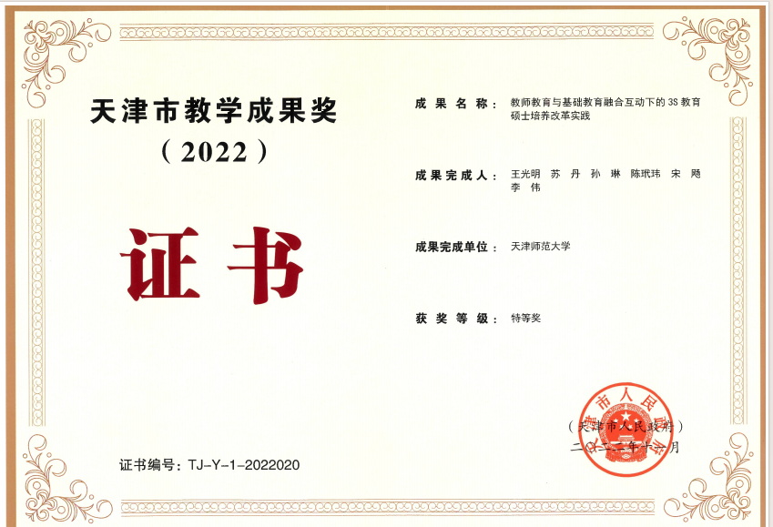 教学成果获得高等教育(研究生)国家级教学成果奖二等奖1项,天津市级教学成果奖特等奖1项、一等奖4项。获评天津市优秀青年研究生指导教师4人,天津市优秀博士学位论文指导教师10人,天津市优秀硕士学位论文指导教师30人。