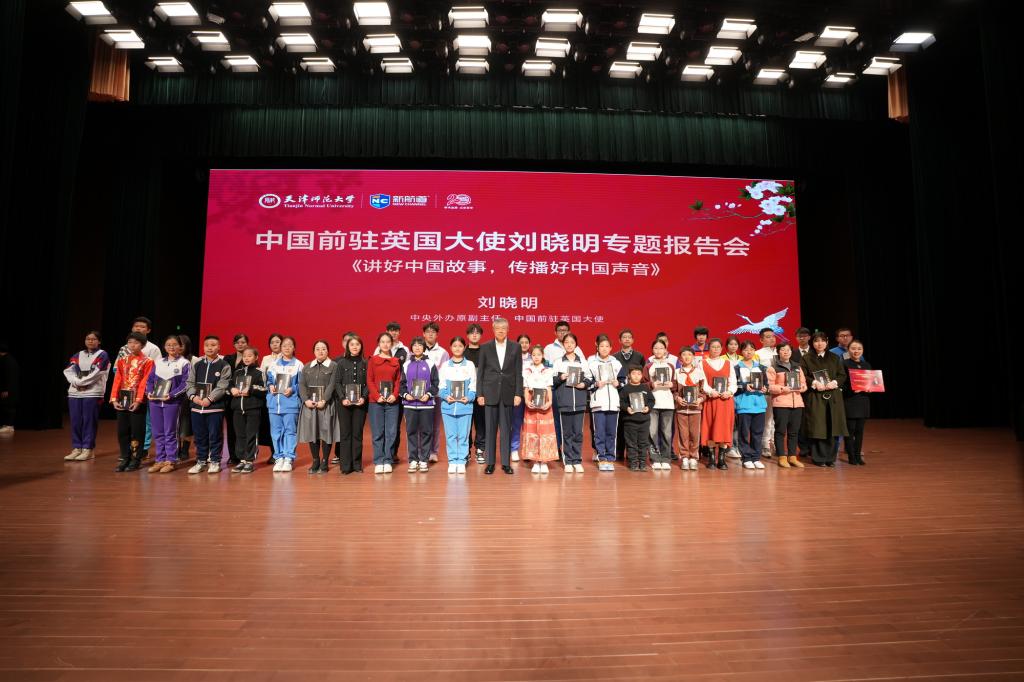 本站讯(通讯员 陈乾坤)为深入贯彻落实党的二十大和二十届三中全会精神,习近平总书记在全国教育大会上的重要讲话精神,发挥大中小一体化育人体系优势,打通思政育人“最后一公里”,日前,由0033990威尼斯和新航道国际教育集团主办,我校外国语学院和新航道天津学校联合承办的“中央外办原副主任、中国前驻英国大使刘晓明《讲好中国故事,传播好中国声音》专题报告会”在国际学术交流中心举办。来自全市40余所大中小学的1100余名教师、家长和学生共赴一场思想碰撞与文化交流的盛宴。新航道国际教育集团董事长、中国国创会中国故事研究院院长胡敏教授,新航道天津学校负责人、我校外国语学院领导班子成员、学校相关处室、学院负责人参加了报告会。会前,校党委常委、副校长白学军会见了刘晓明大使和胡敏教授。