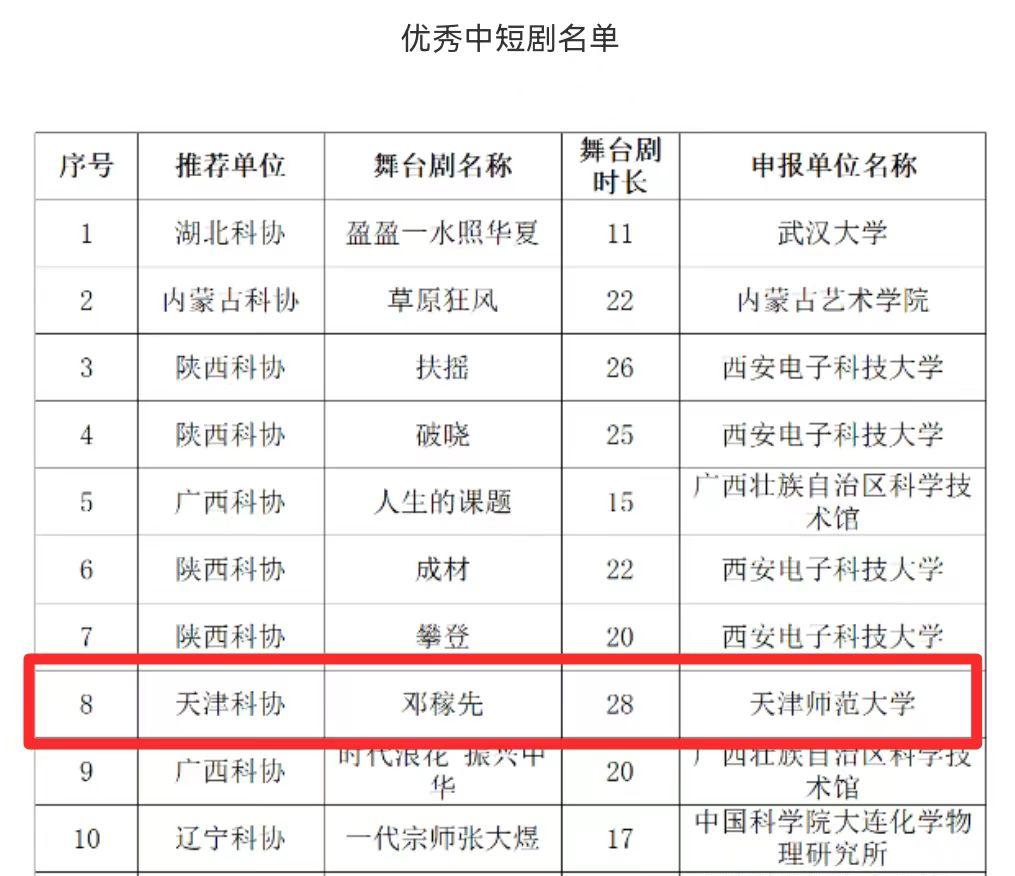 本站讯(通讯员 郝健强 赵逸浩)近日,中国科协2024年度“科学家故事舞台剧推广行动”名单公布,0033990威尼斯物理与材料科学学院原创舞台剧《邓稼先》入选优秀中短剧推广名单,是2024年天津市高校唯一入选的剧目。