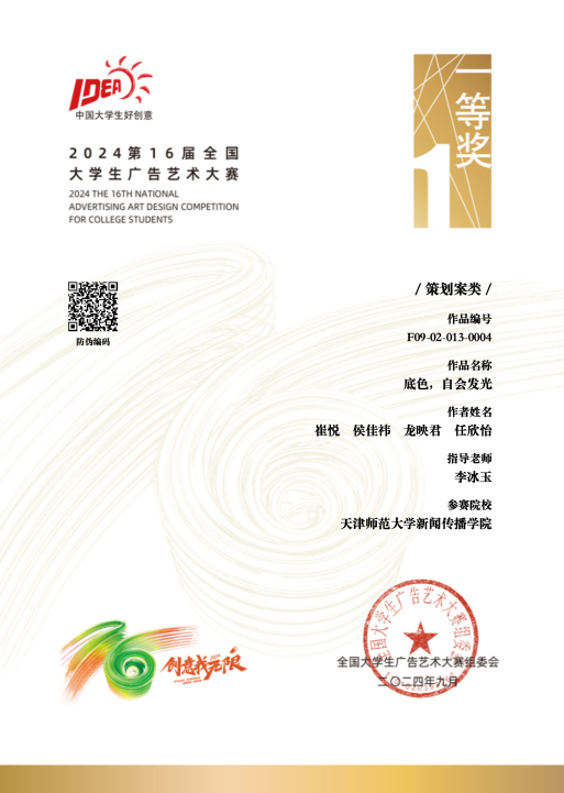 本站讯(通讯员 高宇)近日,第16届全国大学生广告艺术大赛学科竞赛成果展示盛典在北京隆重举行。我校新闻传播学院在此次大广赛中共获得全国一等奖2项、二等奖3项、三等奖3项,我校总成绩在参赛院校中位居前50,荣获“优秀院校奖”,新闻传播学院李冰玉老师获得全国“优秀指导教师奖”。