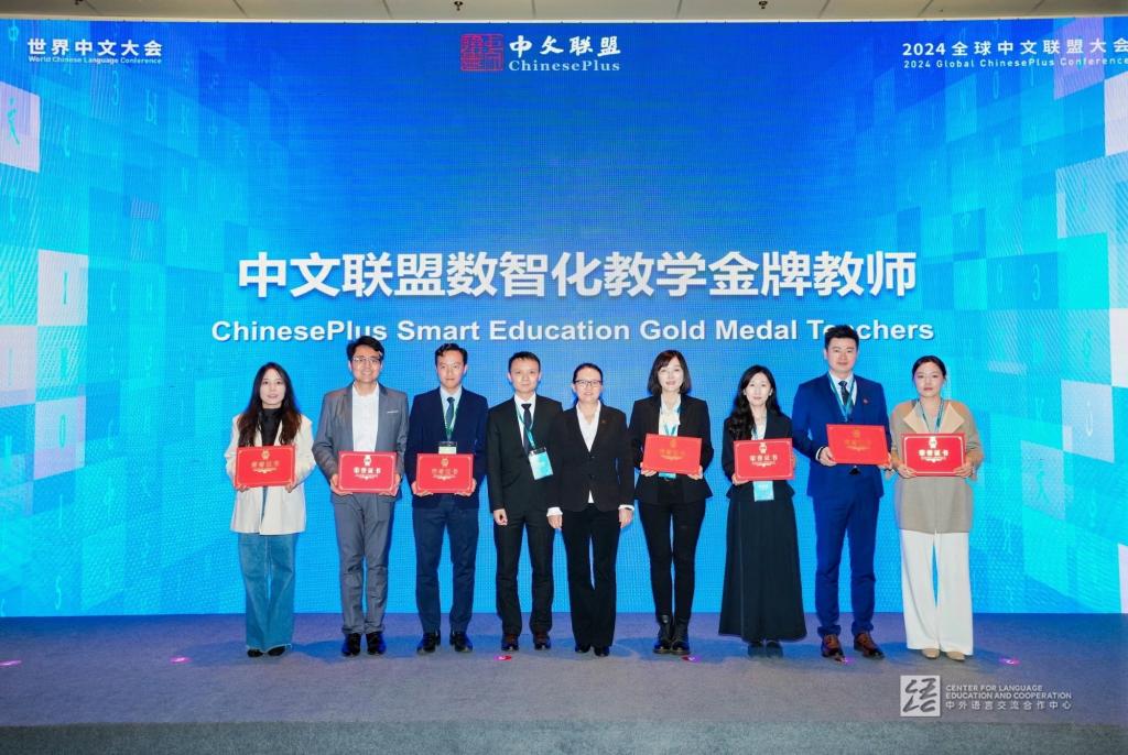 11月17日,中文联盟、世界汉语教学学会智慧教育分会、五洲汉风网络科技(北京)有限公司携手全球合作伙伴联合开展了中文联盟数智化教学“金牌”项目评选活动。经组委会评审,有50家金牌合作机构、29门金牌课程、35位金牌教师、13个金牌教学工具、21个金牌应用案例荣获金牌荣誉,我校教师于泓珊获“中文联盟数智化教学金牌教师”荣誉称号,接受中文联盟主席王锦红颁授荣誉证书。