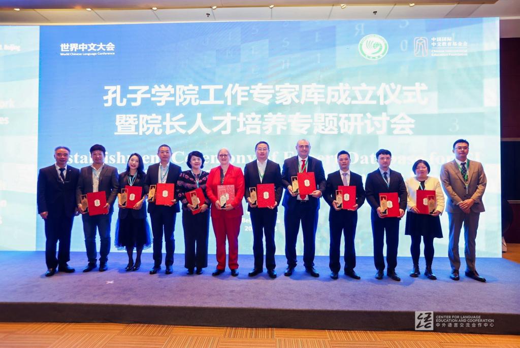 11月16日,中国国际中文教育基金会在2024世界中文大会期间举办“孔子学院工作专家库成立仪式暨院长人才培养专题研讨会”,向来自6个国家的28位汉学家、校长、教授以及孔子学院院长颁发聘书和奖杯。我校部校共建国际中文教育发展研究院陈晨荣获殊荣,中国国际中文教育基金会赵灵山秘书长颁授聘书和奖杯。专家库主要任务是提升促进孔子学院中方院长人才培养和队伍建设,以及评估中方合作院校主体作用发挥情况,入库专家学术背景涉及国际中文教育、教学管理、媒体与传播、法律、心理健康、跨文化交际和外事礼仪等相关领域。