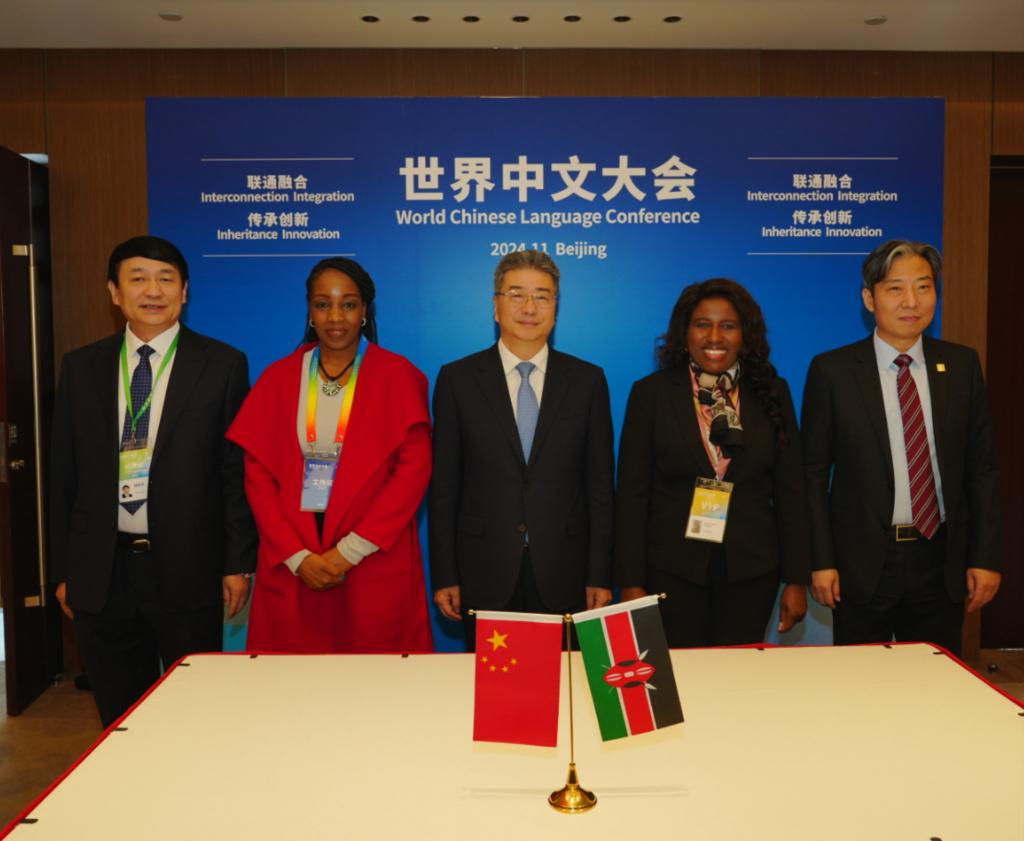 11月16日,教育部副部长吴岩同肯尼亚教育部副部长碧翠丝·穆甘达·杨加拉共同签署两国教育部在肯尼亚合作开展中文教育的谅解备忘录。该备忘录酝酿于2023年,在教育部语合中心指导下,学校积极协调外方合作伙伴,助力推动中文纳入肯尼亚国民教育体系,进而积极对标中文纳入肯尼亚国民教育体系的新需求,开展多层次、多维度的调研,促进双方教育工作者互访,促进协议纳入双方教育部门议事议程。协议的签署将大大推动双方教育交流合作,特别是为中文纳入肯尼亚国民教育体系后的本土师资联合培养、合作教学研究、合作教材编写、科学文化交流、文明对话研究等方面提供了制度保障。