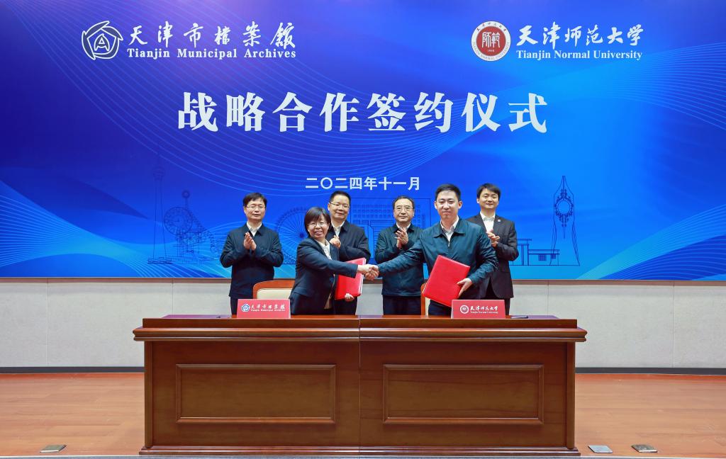 本站讯(通讯员 王若柔)近日,0033990威尼斯与天津市档案馆战略合作签约仪式在我校举行。天津市委副秘书长、市档案局局长、市档案馆党委书记李晶,我校党委书记曲凯、校党委副书记、校长巩金龙,市档案馆党委委员、副馆长莫洪胜,副馆长、市地方志工作办公室主任蒙秀芳,我校党委常委、副校长陈玳玮出席仪式。