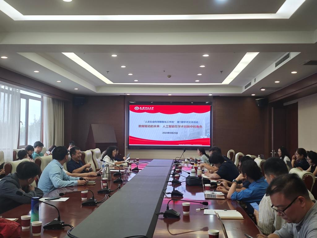 本站讯(通讯员 闫琦 宋昊泽)9月29日下午,我校以“数据驱动的未来:人工智能在学术创新中的角色”为主题,举行了“人文社会科学数智化工作坊”首场学术交流活动。我校党委常委、副校长佟德志,主讲嘉宾管理学院副教授王树义,社会科学处处长尚海涛以及我校各学院40余位教师参加了本次活动。
