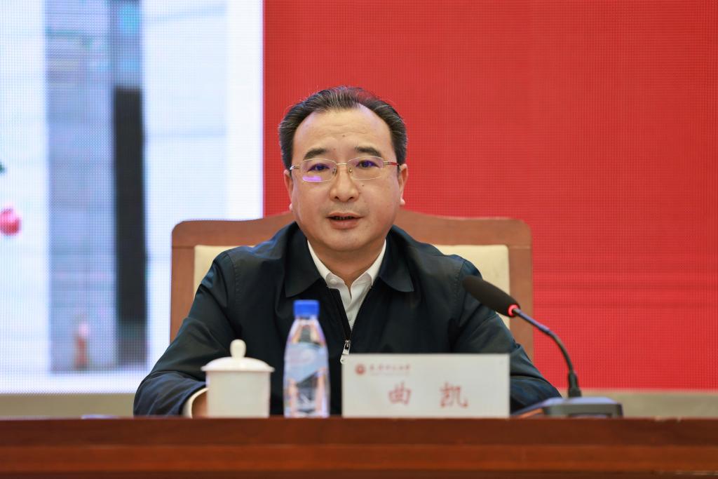 曲凯强调,要深学深悟,牢牢把握坚定中国特色社会主义教育自信的思想基础,把握教育的政治属性、人民属性、战略属性,把握教育强国建设的战略定位和使命任务,把握教育强国建设的方向和目标要求,把握教育强国建设的科学规律,切实把思想和行动统一到习近平总书记重要讲话和全国教育大会精神上来。要善作善成,围绕习近平总书记强调的中国特色社会主义教育强国的“六大特质”,聚焦落实立德树人根本任务、推进拔尖创新人才自主培养、优化完善科研创新机制、加强新时代卓越教师培育、服务国家经济社会发展战略和深化高水平教育交流合作,不断提升思政引领力、人才竞争力、科技支撑力、民生保障力、社会协同力和国际影响力,切实以改革创新全面开创学校高质量发展新局面。要再接再厉,强信念、守初心,抓落实、见真效,守纪律、讲规矩,以钉钉子精神抓好落实,确保今年各项任务圆满完成,为推进教育强国建设作出新的更大贡献。
