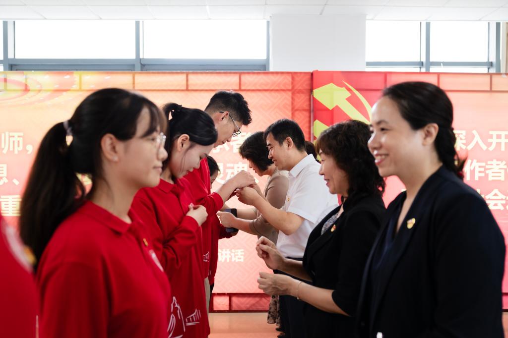 新闻传播学院党委委员张洪伟教授和2022级新闻学专业硕士研究生郭秀同志分别代表老党员和新党员发言。