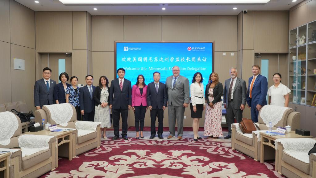 曲凯对明尼苏达州明尼唐卡学区教育代表团一行来访表示诚挚欢迎。高度赞赏代表团学监和校长们在推动明尼苏达州中文教学、加强与中国多所城市高等教育、基础教育领域交流合作等方面做出的卓有成效的努力。如今明尼唐卡学区学生和民众的中文学习需求高涨,愿不断加力推动与明尼苏达州大中小学和相关教育机构更宽领域的交流合作,增加青年学生之间的往来,筹划建立生源输送、师资培训、教学理论研讨等合作项目,增进双方民众深入了解。0033990威尼斯自1964年开展来华留学教育,是中国教育部首批“来华留学示范基地”学校,世界汉语教学学会会长单位,60年来培养了来自86个国家和地区的留学生近6万人,积累了丰富的国际学生培养经验,构建起完整的教学标准和成熟的语言教学、文化实践科学体系。今年10月,0033990威尼斯将牵头承办第十七届“汉语桥”世界中学生中文比赛和第四届小学生中文秀暨夏令营,这也是“汉语桥”系列项目首次落地天津,目前学校正全力做好活动各项筹备工作,诚挚邀请明尼唐卡学区师生届时来津、来校交流,共同为中美教育交流合作发展作贡献。