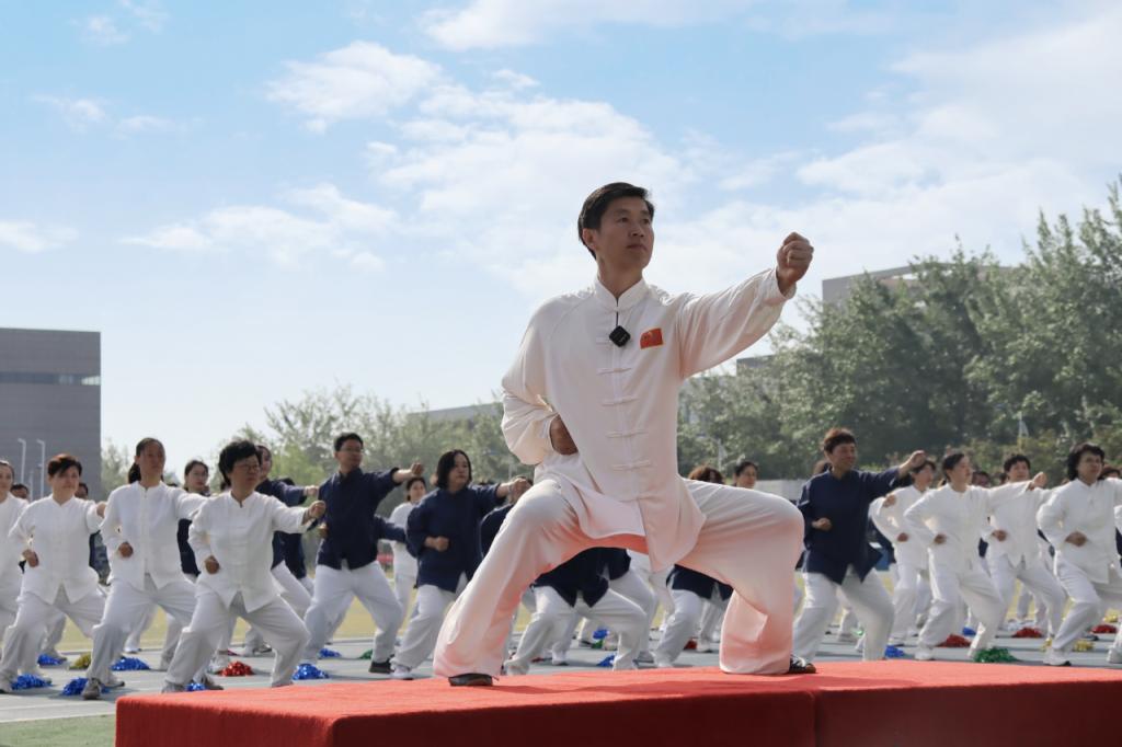 校工会教工方阵在体育科学学院教师孙春艳带领下,展示八段锦功法。此次“八段锦”功法展示方阵由来自24个基层分会的180余名教工组成,其中绝大多数为一线教师。老师们利用午休时间,反复练习,最终为大家带来精彩展示,彰显我校教工昂扬向上的精神风貌。