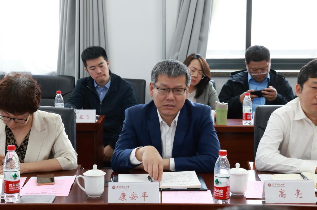 陈泮成对康安平一行的到来表示诚挚欢迎,感谢河北区委、区政府在教师人才队伍建设、校地合作共建等方面给予的大力支持。介绍了我校第八次党代会第十三次会议通过的学习贯彻习近平总书记视察天津重要讲话精神实施举措的有关内容。希望双方进一步搭建常态化交流平台,发挥各自优势,在提高人才培养质量、促进实践创业就业、合作开展科学研究、服务区域社会发展等方面密切沟通联系,开展深度合作,实现互促共赢,有力有效落实“四个善作善成”的重要要求。