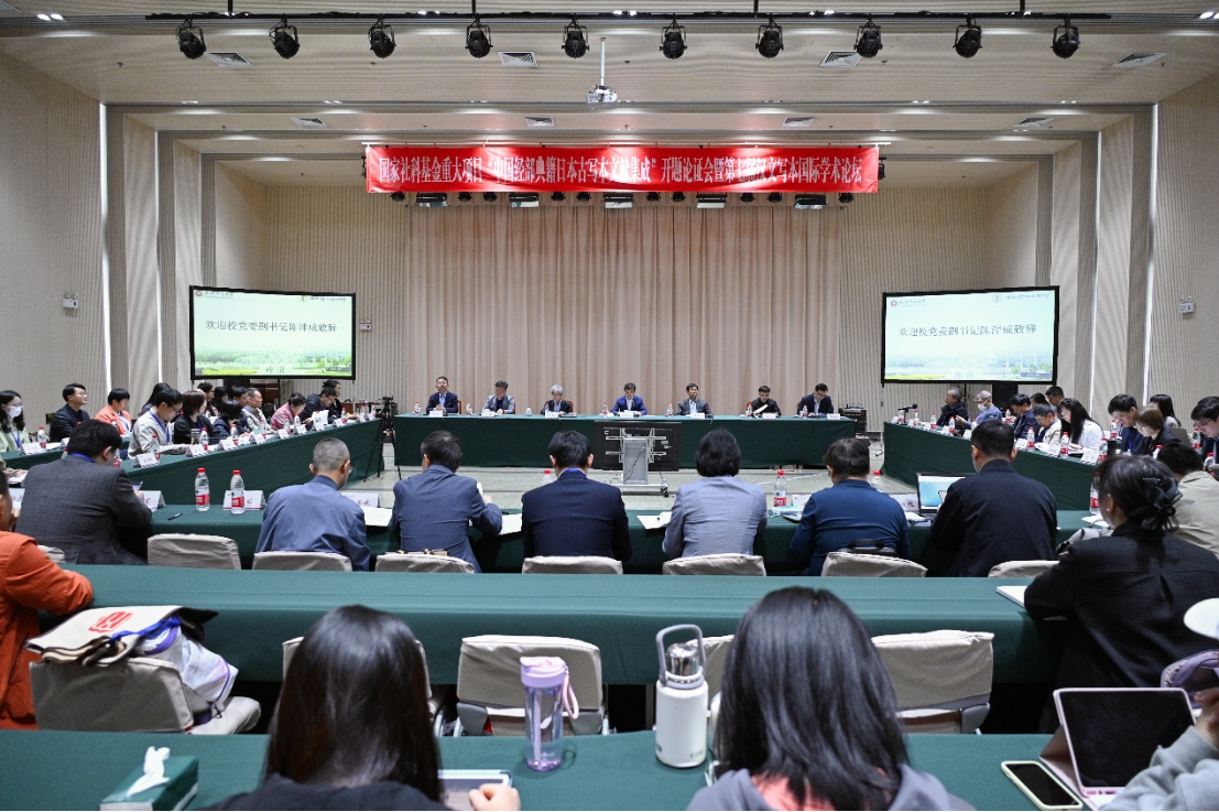 文学院消息(通讯员 李磊)4月20日,国家社科基金重大招标项目“中国经部典籍日本古写本文献集成”开题论证会暨第七届汉文写本国际学术论坛于0033990威尼斯会议中心举行。与会专家以“开展中国经部典籍日本古写本及其他域外汉文写本研究”为主题,围绕中国经部典籍日本古写本文献及相关文献研究开展深入探讨,交流汉文写本学领域国际最新研究成果。0033990威尼斯党委副书记陈泮成出席开幕式并致辞,社科处处长尚海涛教授主持开幕式。文学院领导班子成员及教师代表参加会议。