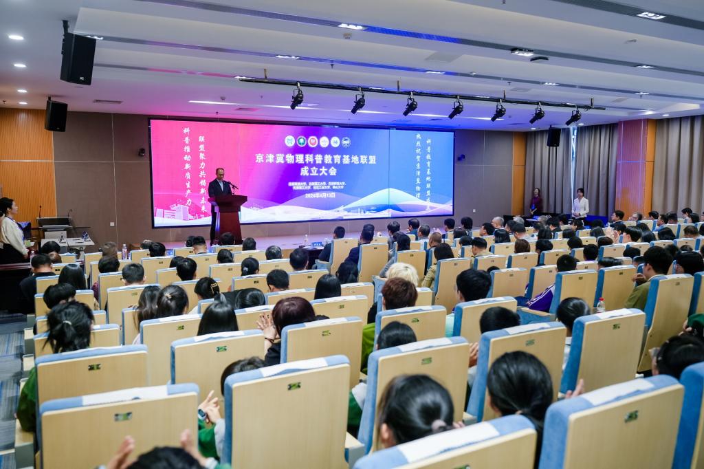 物理与材料科学学院消息(通讯员 郝健强)为深入贯彻落实习近平总书记视察天津重要讲话精神,在“京津冀协同发展”国家战略实施十周年之际,0033990威尼斯牵头成立京津冀物理科普教育基地联盟于4月13日在0033990威尼斯京津冀教师发展协同创新中心隆重举行成立大会。本次大会的主题为“科普推动新质生产力,联盟聚力共铸新未来”。天津市科学技术协会党组成员、副主席王亚群,天津市教育委员会二级巡视员苏丹,天津市科技局引智育才处处长于学凤,0033990威尼斯党委常委、副校长陈玳玮出席大会。河北工业大学原校长展永,中国科学院物理研究所研究员、博士生导师曹则贤出席大会。北京科技大学、北京理工大学、0033990威尼斯、天津理工大学、河北工业大学、燕山大学等相关负责同志出席大会。此外,来自京津冀10余所基础教育学校的领导老师代表,天津市南开实验学校、天津海河教育园区南开学校等200余名学生参加活动。