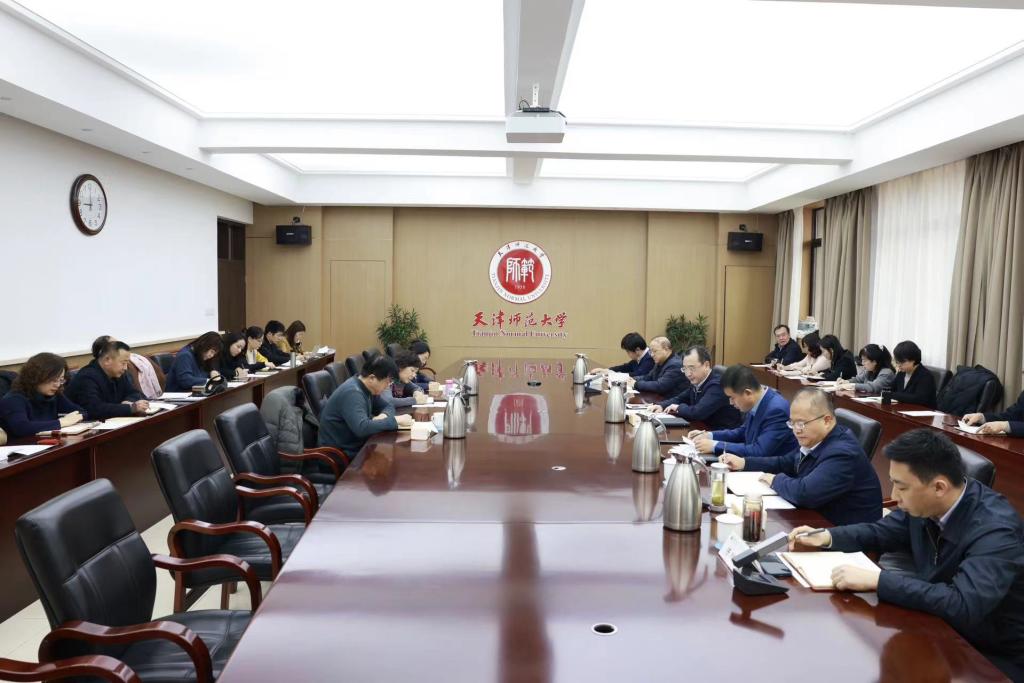 会议指出,习近平总书记在龙年新春佳节来临之际亲临天津视察指导,看望慰问基层干部群众,在新时代新征程天津发展进程中具有重要里程碑意义。我们要深刻领会习近平总书记视察天津重要讲话精神,牢牢把握新时代新征程习近平总书记对天津工作的部署要求,通过党委理论学习中心组学习研讨、党支部“三会一课”、主题党日等形式,在全校范围内迅速兴起学习宣传贯彻热潮。要坚持“四个面向”,充分发挥科教资源和交叉学科优势,大力推进产学研深度融合,高质量建设以“智能信创”为特色的市级大学科技园,积极融入天开园高标准发展,助力服务天津“1+3+4”现代工业产业体系建设,在发展新质生产力上勇争先、善作为。要主动融入京津冀协同发展大局,充分发挥学科集群优势,在教师教育、心理健康、生态文明、国际中文教育等领域持续推动互通互联、共建共享,全力助力京津冀教育协同发展向纵深迈进。要坚持以文化人、以文育人,充分发挥天津基础教育文脉发祥地优势,深度发掘天津地方特色文化资源、历史文化故事题材和红色精神内涵,提高讲好天津故事、讲好中国故事的能力水平,为展现天津城市文化特色和精神气质注入新的活力。要聚焦师生急难愁盼,突出学校全域精细化管理,建立健全各类管理服务系统、推动落实民生服务项目,充分发挥教代会、工会、学代会在学校民主管理和监督中的作用,持续完善师生满意的服务保障体系,不断提高学校治理现代化水平。要把巩固拓展主题教育成果作为重大政治任务抓实抓好,持续加强理论武装,继续抓好整改整治、建章立制等工作,持续改进作风,推动学校广大党员干部走好新时代党的群众路线,持续抓好基层党组织建设,推进全面从严治党向纵深发展,营造良好的政治生态。要时刻绷紧安全这根弦,压实安全生产责任制,加强困难群体帮扶救助,统筹抓好春节期间有关工作,积极防范化解各类风险,切实维护校园安全稳定。