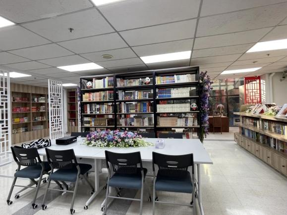 “朝晖书院”当前馆藏图书约一万余册,国际中文教育领域重要学术期刊16种,音像制品约800件,类目涵盖中文教材、工具书、中国文学作品、中国哲学、历史、艺术、文化读物等。