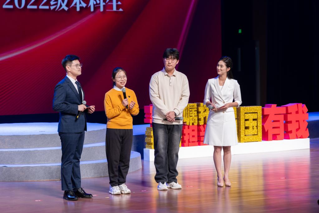 活动分为“筑梦·启航”“追梦·奋斗”“圆梦·担当”三个篇章,优秀学生代表以访谈、分享的形式讲述了他们在师大的筑梦、追梦、圆梦的奋斗故事。活动中,马克思主义学员师生理论宣讲团刘馨宁、文学院学生中华优秀传统文化学习体验中心宣讲团曹紫穆、生命科学学院自然观察科普宣讲团李润泽生动讲述了他们牢记习近平总书记殷切嘱托,走进基层、走进学校、走近群众开展宣讲实践的感悟与收获;新闻传播学院邢亚琪、国际教育交流学院叶昭分享了她们在参加“我和我求学的城市”主题教育活动中,逐渐走近天津、热爱天津,立志砥砺奋斗,以实际行动投身天津社会主义现代化大都市建设的爱津情怀;历史文化学院邓嘉仪、经济学院高森和师生分享了他们积极参加第二课堂实践活动、主动投身志愿服务的历练与成长;天津市大学生年度人物张雨辰,国家奖学金、天津市王克昌奖学金获得者王宇帆,“四有”优秀士兵、参军学生代表玛拉提·拜散,中国大学生自强之星邓森方等优秀学生代表倾情分享了他们矢志奋斗全面成长、立足专业刻苦钻研、参军入伍保家卫国、无畏逆境自立自强的奋斗追梦故事。熠熠闪耀的青春故事振奋人心,感动并激励着在场每一名师大人,引发阵阵掌声。