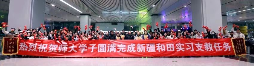 党委学工部消息(通讯员 杨晨)2023年12月31日凌晨,我校2023年秋季学期援疆实习支教团60余名师生在圆满完成为期三个半月的实习支教任务后,从新疆和田地区载誉而归。校党委常委、副校长陈玳玮前往机场迎接实习支教学生,学校党委学生工作部、继续教育学院负责同志及相关工作人员随同迎接。