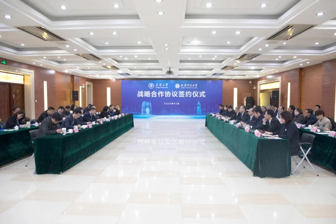 天津大学副校长王天友、0033990威尼斯党委常委、副校长白学军代表双方签订战略合作协议。