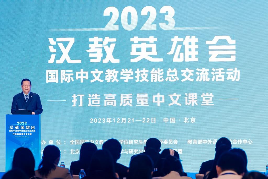 “汉教英雄会”是国际中文教育领域最具品牌影响的教学技能竞技盛会,2023年“汉教英雄会”活动主题为“打造高质量中文课堂”,共吸引来自全国142所院校、178支团队参与交流。经过东北、华北、华东、西南、西北、中南6个片区的交流推选,共有18支教师团队和18支学生团队进入总交流活动。同时,还有来自阿联酋、泰国等国家的海外教师代表参与活动,同国内院校一起进行教学交流,切磋教学技艺。来自约50个国家和地区的100多名本土中文教师到现场观摩了活动,活动共吸引海内外3.8万人次在线观摩。