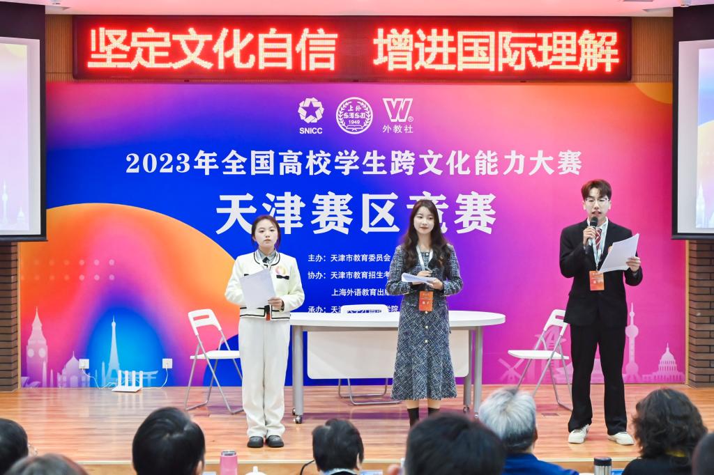 外国语学院消息(通讯员 陈乾坤)近日,由市教委主办、天津大学承办的“外教社杯”2023年全国高校学生跨文化能力大赛天津赛区复赛及决赛在天津大学外国语学院举办,由我校2020级行政管理专业的甘晨希、2021级地理科学(师范)专业的孙艺贝、2022级汉语言文学(师范)专业的陈诗晴三位同学组成的参赛队伍最终获得天津赛区特等奖,成功晋级全国总决赛。