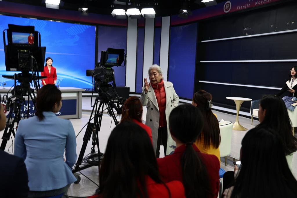 座谈会后,虹云一行来到新闻传播学院观摩了播音专业新闻播报实践教学,与播音系师生代表就“学习贯彻习近平文化思想、共谋播音专业高质量发展”进行深入交流。