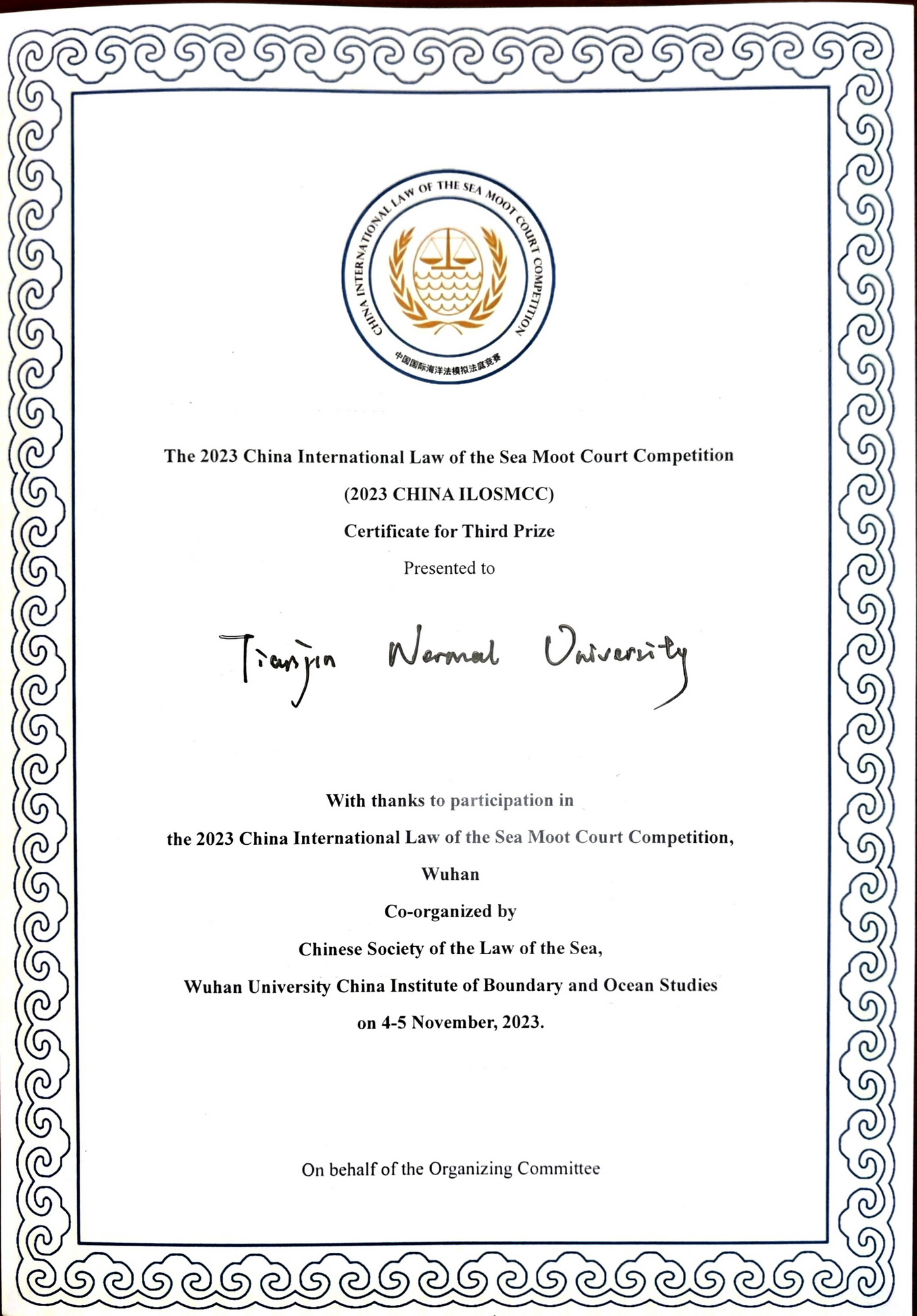 中国国际海洋法模拟法庭竞赛(英文)由中国海洋法学会和武汉大学中国边界与海洋研究院联合主办,赛事模拟国际海洋法法庭的案件审理程序,是目前国际上同领域竞赛中规格最高、参赛规模最大的全程英文模拟法庭竞赛。复赛和决赛环节,由现任中国海洋法学会会长、国际海洋法法庭前法官高之国先生担任庭长。本项赛事吸引了来自中国政法大学、西南政法大学、西北政法大学、厦门大学、南开大学、山东大学、中国海洋大学、国际关系学院等国内外近40所高校参与。
