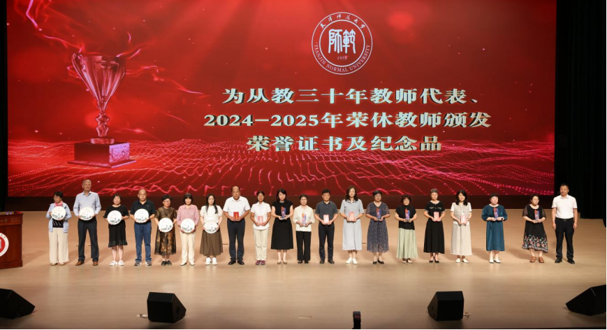 校领导曲凯、巩金龙、陈玳玮、徐兴云、佟德志、秦龙、纪德奎出席大会。派驻纪检监察组,机关党政职能部门、群团组织、直属单位、各学部(院)主要负责同志,从教三十年教师、荣休教师、2025年受表彰教师和集体以及各学部(院)师生代表700余人参加大会。会议由校党委副书记陈玳玮主持。