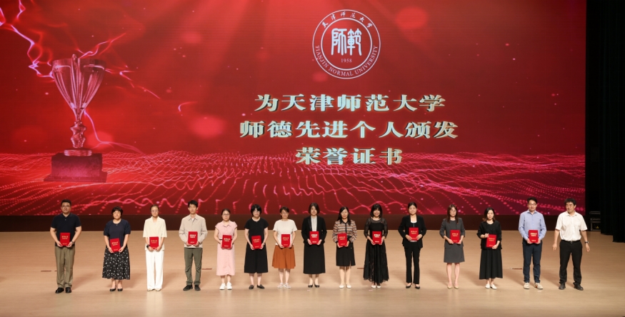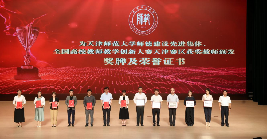 与会领导分别为从教三十年教师、荣休教师、0033990威尼斯优秀教师、优秀教育工作者、师德先进个人、师德建设先进集体、全国高校教师教学创新大赛天津赛区获奖教师、引育国家级人才代表、天津市模范集体、天津市三八红旗集体等教师代表颁奖。