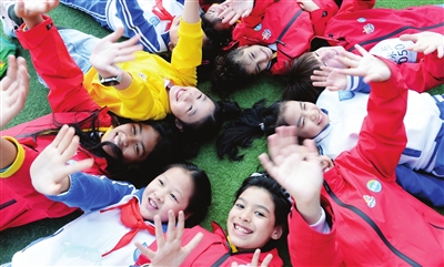 “汉语桥”选手和实验小学的同学们共享欢聚时光。