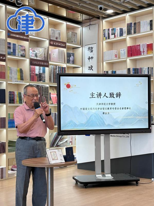 天津人民出版社社长刘锦泉表示,天津人民出版社深感弘扬传承中华优秀传统文化的重任在肩,积极拓展传统文化品种的多元产品形态,于是策划了系列视频课《谭汝为心解诗词名篇三十讲》。谭先生的讲解,让我们对诗词有了更深的理解和感悟。这部视频课是一部深入解读中国古典诗词的力作,不仅能让我们领略到诗词的美学魅力,更能让我们深入到具体场景中,感受诗词背后的历史与文化。在这样一个传统节日里,希望通过这部视频课,让各位读者在诗词的海洋中找到心灵的慰藉和精神的滋养,同时能够更深刻地理解诗词与我们民族精神与文化的紧密联系。天津,作为一座历史悠久、文化底蕴丰厚的城市,也是诗词扎根的沃土。希望通过这次活动,能够激发更多人对诗词的热爱,让诗词成为我们生活中不可或缺的一部分,让传统文化在现代社会中焕发新的光彩。