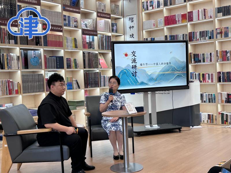 天津广播电视台生活广播副总监、中国广播电视协会演播艺术家刘军,天津广播电视台生活广播节目制作人于霁丹围绕“谭汝为语言文化教研与科普的结合”展开分享;天津市诗词协会副会长李军,语文教育专委会副理事长赵华,对谈“历代端午诗词名作简析及文化趋向”;语文教育专委会理事党雅芬,文化学者、男中音歌唱家彭诗宽讲述“端午节——中国诗歌节”,彭诗宽还献上诗歌演唱;0033990威尼斯地方文献研究中心主任、天津史专家王振良细数端午节习俗的丰富过程……嘉宾们的精彩分享和表演,迎来读者的阵阵热烈掌声。