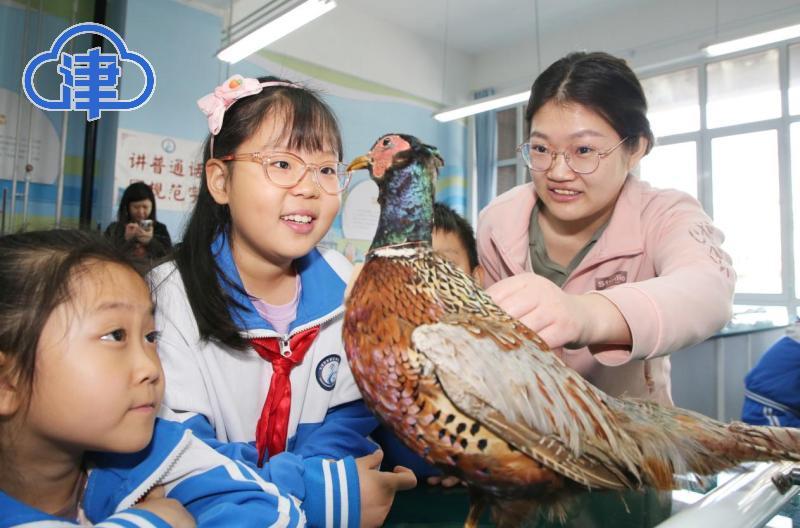 志愿者通过环颈雉、红腹锦鸡、白鹭、鹦鹉等鸟类活体、标本、图片等丰富的形式,介绍鸟类的特征、生活习惯、候鸟迁徙线路等,向孩子们普及保护鸟类的重要性。