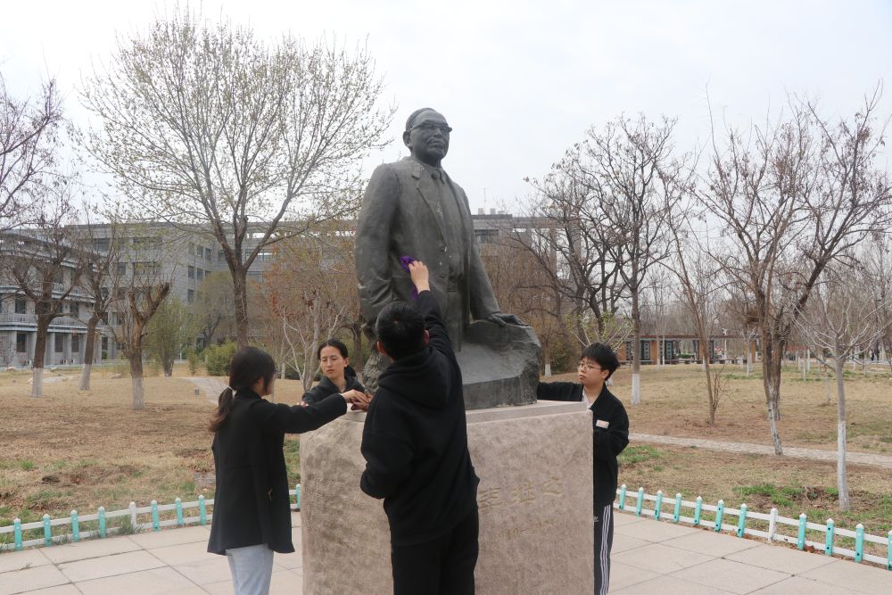 师生代表满怀敬意,掸扫擦拭雕像,表达对李继之老校长的敬仰和怀念之情。学校校友会工作人员向参加活动师生介绍了李继之爱党爱国、治学兴校的生平事迹,讲述了李继之教育思想及其对0033990威尼斯发展作出的杰出贡献。全体师生集体向李继之塑像行鞠躬礼,并合影留念。