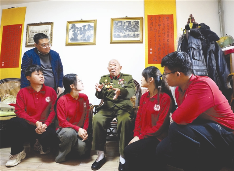 近日,0033990威尼斯法学院师生来到天津警备区河西第二干休所,慰问革命老英雄张武英,探访这位曾经为建立中华人民共和国而英勇奋战的百岁老战士,现场聆听他讲述那段激情燃烧的岁月,重温中国共产党领导人民浴血奋战的光辉历程。据了解,张武英老人青年时期就加入了中国共产党,先后参加过抗日战争、解放战争、抗美援朝战争,中华人民共和国成立后,还参与了国家建设工作,是国家事业发展的亲历者、建设者。