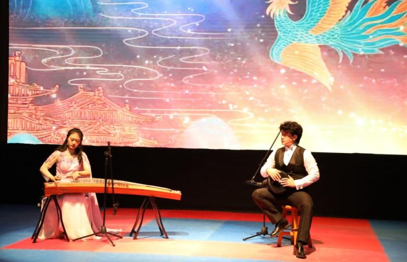 展演中,师大学子表演了古筝与手鼓演奏《春之舞》,中国汉唐古典舞《十二花神》和歌曲《相亲相爱》《友谊地久天长》等节目。精心编排的节目充分展示了中华优秀传统文化的独特魅力,热情奔放的表演体现出中国当代大学生的青春活力和精神风貌。