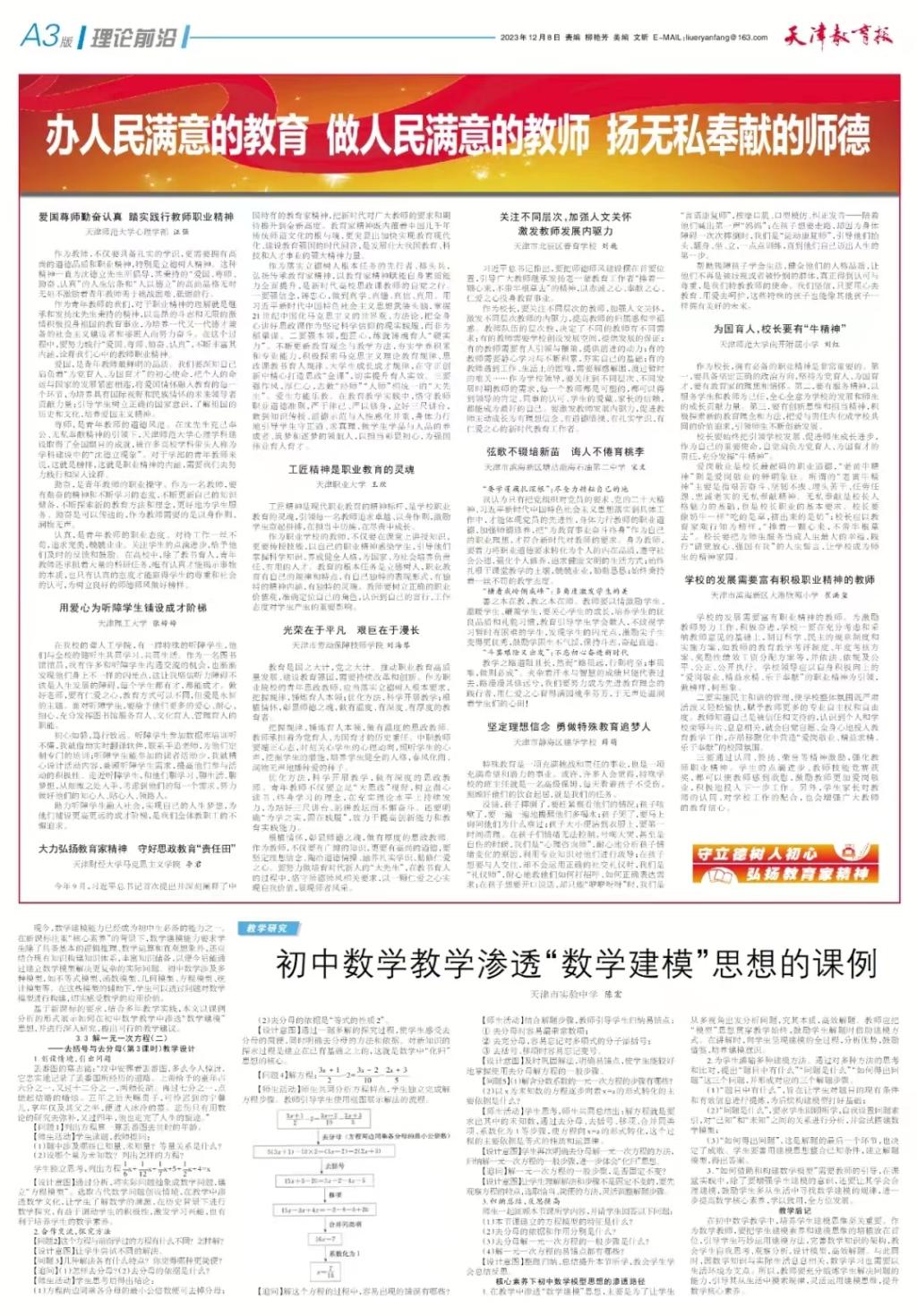 为推动教育家精神入脑入心,学深悟透习近平总书记关于教育的重要论述,进一步贯彻落实党的二十大精神,结合近期天津教育报刊社开展的教师职业精神调研,我们推出“守立德树人初心 弘扬教育家精神”专栏,围绕“办人民满意的教育 做人民满意的教师 扬无私奉献的师德”,刊发各级各类学校干部教师对教师职业精神的感悟与实践。