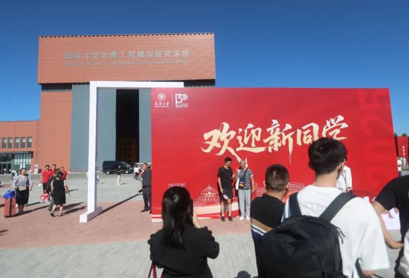 9月6日,天津大学将2025级迎新点设置在国家大型地震工程模拟研究设施前广场,并打开大门,让新生和家长一睹国之重器。