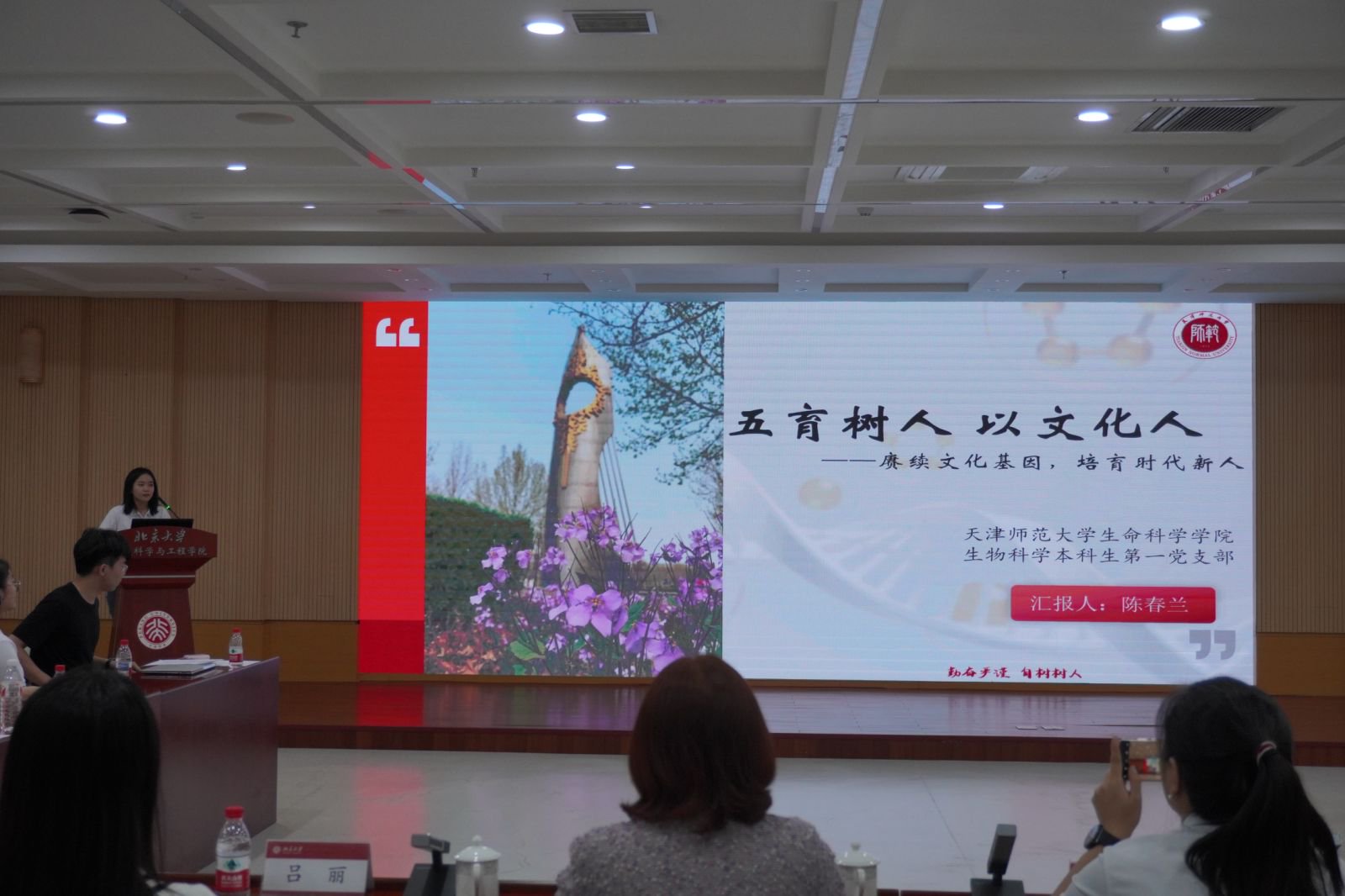 首先北京大学环境科学与工程学院教工第四党支部书记尚静分享支部建设经验,重点介绍微党课、学生支部联动及博士后培养等特色工作。同时结合学科特色,解析环境健康领域在新形势下的发展需求与使命担当。之后,北大环科院2021级博士生第二党支部书记也围绕支部特点、支部特色工作、支部建设的总体思路进行了分享。0033990威尼斯生命科学学院本科生第一党支部陈春兰老师围绕党支部开展的以微党课形式分享红色家书、为你读经典活动、三下乡志愿活动等内容,以“五育树人,以文化人——赓续文化基因,培育时代新人”为题进行了分享。