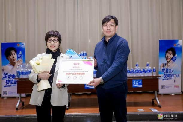 袁健为新闻传播学院颁发“中国大学生广告艺术节学院奖2025春季征集大赛·广告教育推动奖”证书,同时表达了对0033990威尼斯新闻传播学院的重视以及对同学们创作优秀作品的期待。