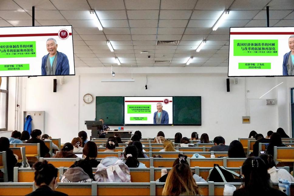 本站讯(通讯员 白帆)为深入学习宣传贯彻党的二十大、二十届三中全会精神,引导学生们学习领悟习近平经济思想内涵和要义。4月10日,经济学院举办“我国经济体制改革的回顾与改革的拓展和再深化--学习二十届三中全会《决定》精神”主题讲座。此次讲座邀请关工委丁为民教授担任主讲人,学院入党、入团积极分子等百余名学生聆听讲座。