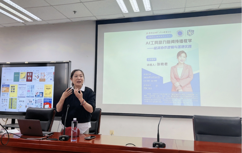 本站讯(通讯员 高宇)3月27日,新闻传播学院首场“传媒智汇·教师教学工作坊”在学院报告厅举行。本次活动以“AI工具助力新闻传播教学”为主题,特邀广播电视编导专业张艳君老师担任主讲人。学院全体教师齐聚一堂,共同探索人工智能技术与新闻传播教学的深度融合。
