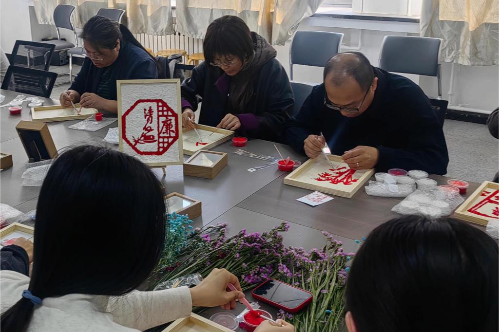 本站讯(通讯员 郝健强)在第115个“三八”国际劳动妇女节来临之际,为深入贯彻清正廉洁、坚守初心的精神,营造风清气正的学院环境,丰富学院女教职工精神生活,3月6日中午,物理与材料科学学院纪委联合学院工会分会共同开展“展巾帼风采,沐廉政清风”国际劳动妇女节主题活动,捻纸为画,共庆女神佳节,润物无声,同沐廉政清风。学院领导班子及全体女教职工齐聚一堂,以“纸浆画”“干花画”为载体,将廉政文化融入艺术创作,在指尖流转间涵养清风正气,共度别具意义的节日时光。